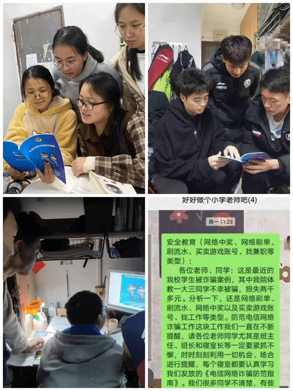 根据工作要求,全体班主任在本周组织召开了安全文明主题班会,全体寝室长带领同学认真学习防范电信网络诈骗相关知识。