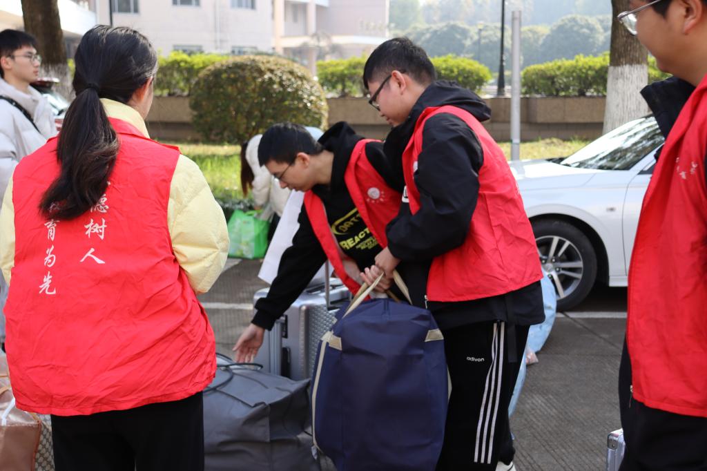 志愿者们上前欢迎新同学们。他们热诚地与同学们进行交流,帮忙搬运行李,耐心地为新同学们解答在临海校区生活、学习等方面的困惑,带领转专业同学们前往他们的新寝室。