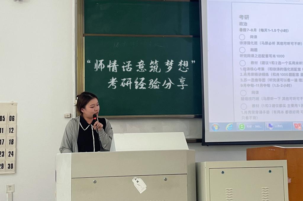 为充分发挥我院优秀学子的朋辈领航作用,帮助同学们更好地进行升学规划5月7日下午,tyc7111cc太阳成集团在A2教室举办“师情话意筑梦想”考研经验分享会。辅导员季树宇、朱浩楠及2021级部分学生参会。