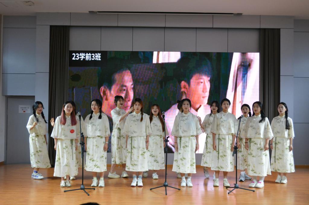 汇演在活力四射、激情澎湃的《舞动青春》中拉开序幕,校健美操队用热情的舞步点燃现场氛围。22学前3、4班携手带来了深情而震撼人心的朗诵节目《教师之使命》,将教师职业的光辉与崇高体现得淋漓尽致。23学前3班所带来的《彩云之南》,如诗如画、让人如临其境。23学前4班带来的舞蹈《椿》犹如一幅绚丽多彩的画卷缓缓展开,让我们如痴如醉地领略了大自然那令人惊叹的神奇与无与伦比的美妙。而23学前3班带来的舞台剧《那抹红》,则将我们带入了历史的洪流中,展现了中华民族在漫长岁月中所沉淀下来的深厚底蕴和强大生命力。校拉丁训练队带来的《sparkling girls》活力四射,婀娜多姿,灵动曼妙。