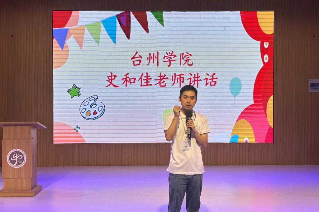 在此之后,实践队的指导老师史和佳老师上台讲话。史老师讲述了自己童年暑假时期的回忆,结合自身经历向同学们道出暑假是用来边“学”边“玩”的。他也祝愿同学们在接下来的时光能中有一段难忘的旅程。