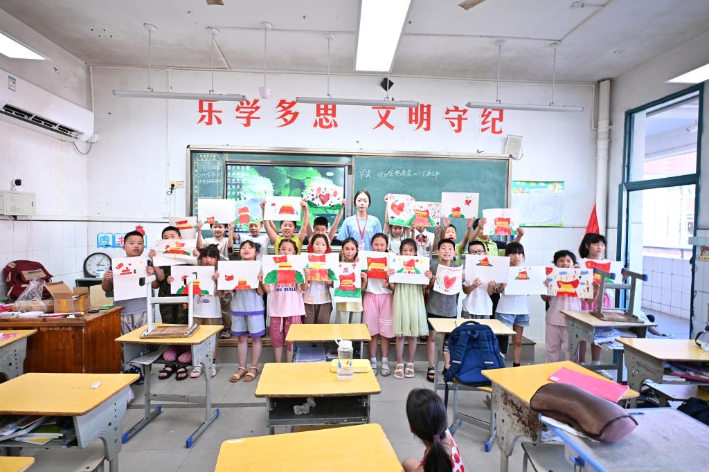 笔墨抒红情,朗朗说童心。“阳光童行,相约城南”暑期社会实践队于天台县实验小学(福溪校区)组织“我心中的红色中国”主题绘画、朗诵与歌唱活动。孩子们以画笔将心中的红色故事、英雄形象、美丽祖国一一呈现于画布之上;用清脆悦耳的歌声谱写着一曲曲红色赞歌。
