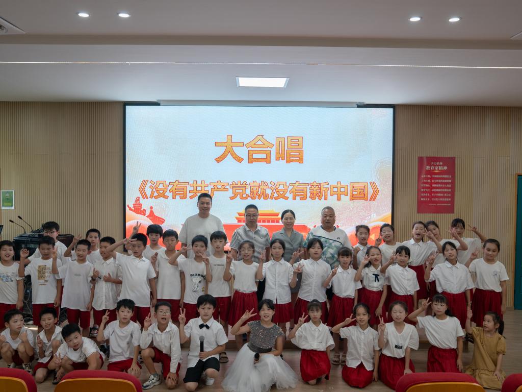 最后,全体师生共同演唱《没有共产党就没有新中国》,激昂的歌声表达了对党的忠诚和对祖国的热爱。此次汇报演出,节目形式多样,内容丰富多彩,既展示了孩子们在暑期兴趣班的学习成果,也传递了清正廉洁的社会风尚。同时,在筹办汇报演出的过程中,实践队队员们也提升了自己的组织能力和专业素养,更深一步的理解了教学的意义。
