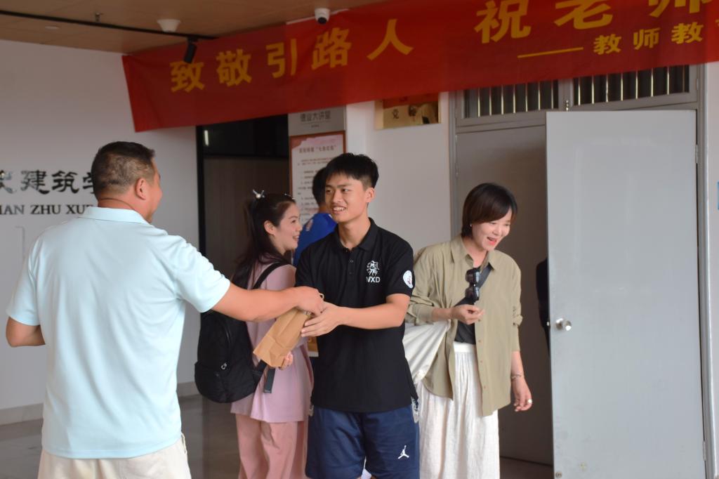 为确保活动能够顺利推进,团学会的同学们早早将场地布置一新。“致敬引路人,祝老师们节日快乐”的条幅高高悬挂于头顶上方,鲜艳夺目;地面上则整整齐齐地摆满了为每一位老师悉心准备的礼品。礼品袋中,存放着同学们用心制作的感恩卡片以及明艳动人的鲜花。那一张张卡片,每一处笔触都承载着学生们最为诚挚的祝福;每一个字符都凝聚着学生们对老师的敬重与爱戴之意。