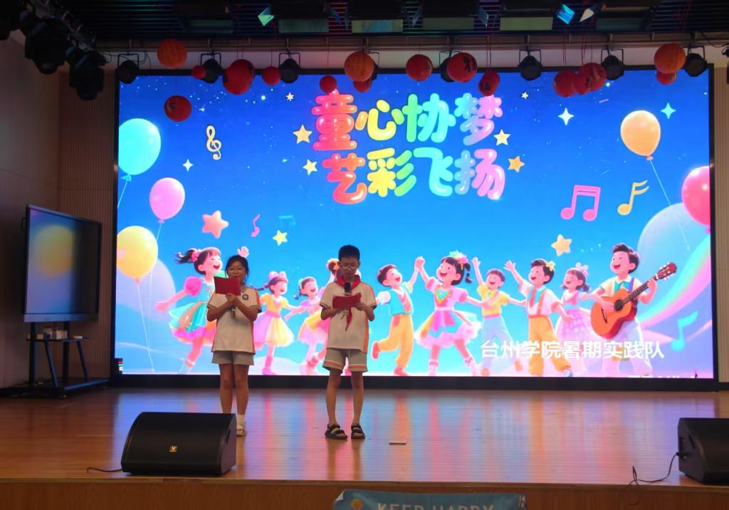 为提高师范生专业素质,积累教学实践经验,助力小学暑托管理工作,展示教学成果,7月14日,tyc7111cc太阳成集团“百丈逐浪,教心启航”暑期社会实践队在温岭市百丈小学开展总结汇报演出。王晶鑫、江海荣、林剑雄、林燕等校领导莅临现场观看指导。