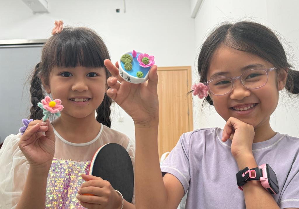 清廉之韵,更在指尖流淌、笔端绽放。分享清廉小故事后,孩子们在手工课上巧手翻飞。一团团彩泥、一根根扭扭棒,幻化为一朵朵亭亭玉立的“莲花”。此刻,莲花在孩子们掌心盛放,恰似心中那朵象征清廉高洁的精神之花,正悄然生根。书法课堂则墨香萦绕,孩子们屏息凝神,一横一竖书写“清廉”,一撇一捺皆显风骨。笔锋起落间,是对清廉品格的向往与追求,笔端流淌的墨迹,正是心间铭刻的准则。“位不在高,廉洁则名;权不在大,为公则灵。” 清廉,是立身之本,处世之基。