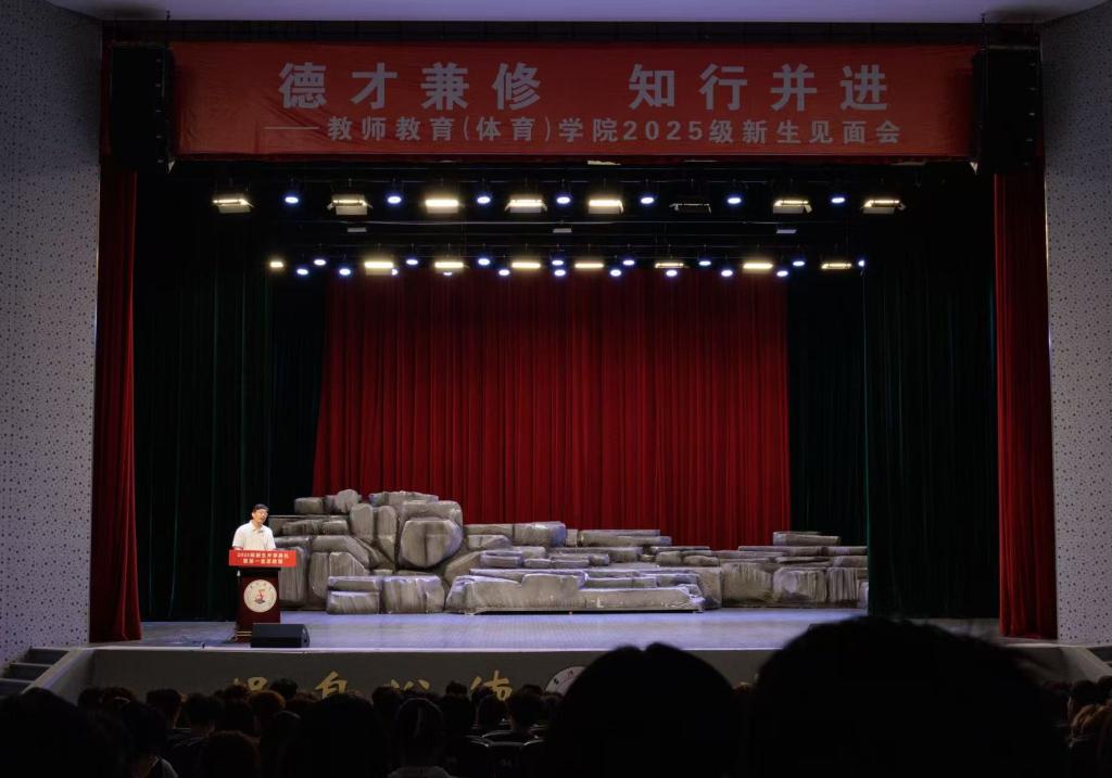见面会伊始,院长张夫伟代表学院热烈欢迎新生的加入。他指出,大家的到来为学院注入了新的血液,也为学院未来发展提供了新的可能。他强调,尽管各专业发展方向有所不同,但目标始终一致:即培养以民族复兴为己任的新时代教师。在人工智能带来挑战与机遇的今天,他鼓励同学们更要发挥“人”的不可替代作用,不畏科技,善用科技,实现从“知识传递者”向“人生引领者”的角色转变。最后,他衷心祝愿所有新生在教院“百尺竿头,更进一步”。